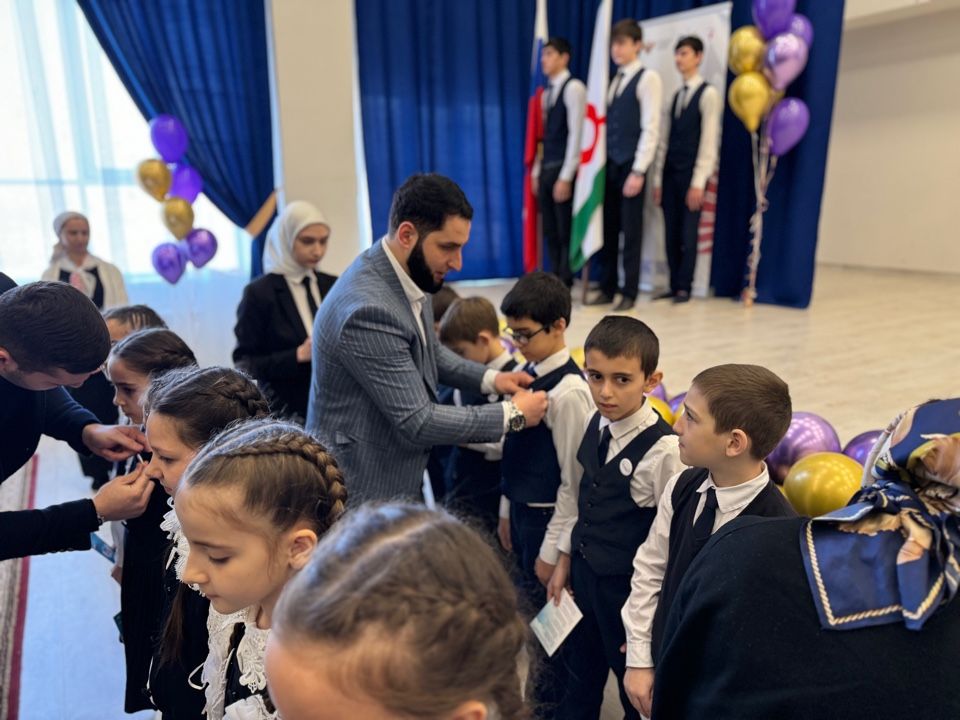 29.02.2024 г. в актовом зале ГБОУ «СОШ №4 г. Сунжа им. А.М. Калиматова» было проведено торжественное мероприятие – посвящение начальных классов в ряды «Орлята России». В рамках мероприятия ученики исполняли песни и танцы. Присутствовали почетные гости: Колоев Саид Халитович - региональный координатор «Навигаторы детства», Кодзоев Саидмохаммад Саюпович - руководитель местного отделения «Движения Первых», Цечоев Магомед Русланович - специалист местного отделения «Движения Первых», Евлоева Макка Даутовна - специалист ГКУ «Управление образования по г. Карабулаку, г. Сунже и Сунженскому району РИ», которые поддержали ребят.